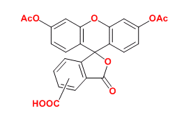 熒光素二乙酸酯(FDA)及其衍生物是非熒光分子,其擴散到細胞中并被細胞內非特異性酯酶水解以產(chǎn)生熒光產(chǎn)物。熒光產(chǎn)物只能在具有完整細胞膜的細胞中積累;因此,具有滲漏膜的死細胞不會被染色。 FDA及其類似物(例如CDCFDA)的膜轉運和細胞內水解的精確動力學與細胞功能有關,因此FDA標記可用于通過流式細胞術或熒光顯微術監(jiān)測細胞。 FDA染料標記細胞的熒光強度在細胞系和菌株之間差異很大,可能是由于細胞內酯酶活性的差異。CFDA是一種胺反應性FDA衍生物,可用于制備各種FDA結合物。